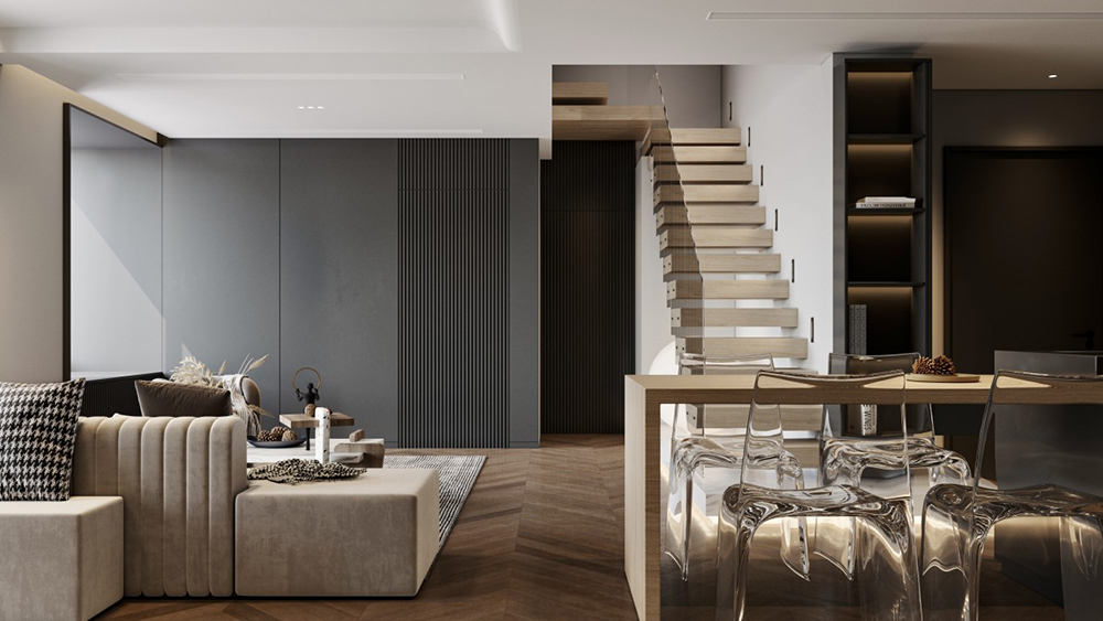 軟裝設(shè)計最大限度的保留了客戶空間的開敞性,開敞明亮的空間五臟俱全,很好的傳達了住宅的新居住模式。