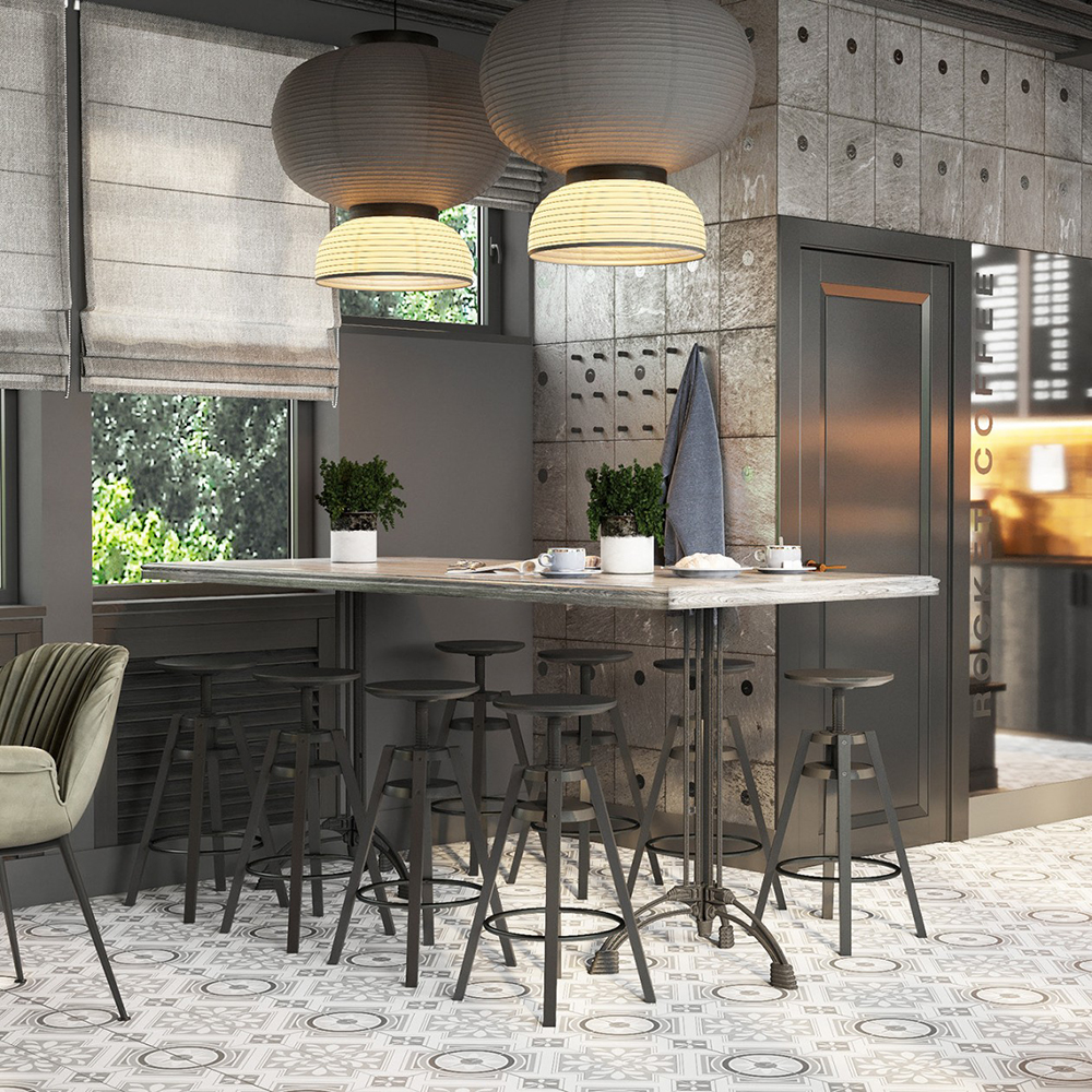 設(shè)計(jì)師在桌椅設(shè)計(jì)中,舍棄了許多繁瑣的設(shè)計(jì)語(yǔ)言,簡(jiǎn)單的幾何造型在精準(zhǔn)比例的控制下,展現(xiàn)出了強(qiáng)有力的力量感。過(guò)道之間吸音棉材質(zhì)的橢圓椅子與不銹鋼的材質(zhì)沖突下,視覺(jué)反饋上減少了它的存在感。桌椅的設(shè)計(jì)更加簡(jiǎn)約和概括了造型語(yǔ)言和材質(zhì)。讓顧客落座后更加關(guān)注產(chǎn)品本身。自助臺(tái)更像是一個(gè)黑匣子,吸附在長(zhǎng)桌上,強(qiáng)調(diào)了它的存在。