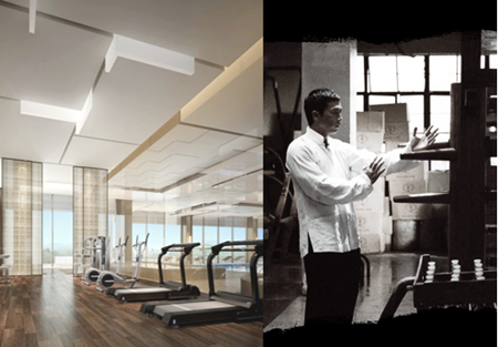 健身房中,設(shè)計(jì)師試圖以東方運(yùn)動(dòng)“精氣神”與西方“生命在于運(yùn)動(dòng)”結(jié)合來(lái)消弭文化沖突。