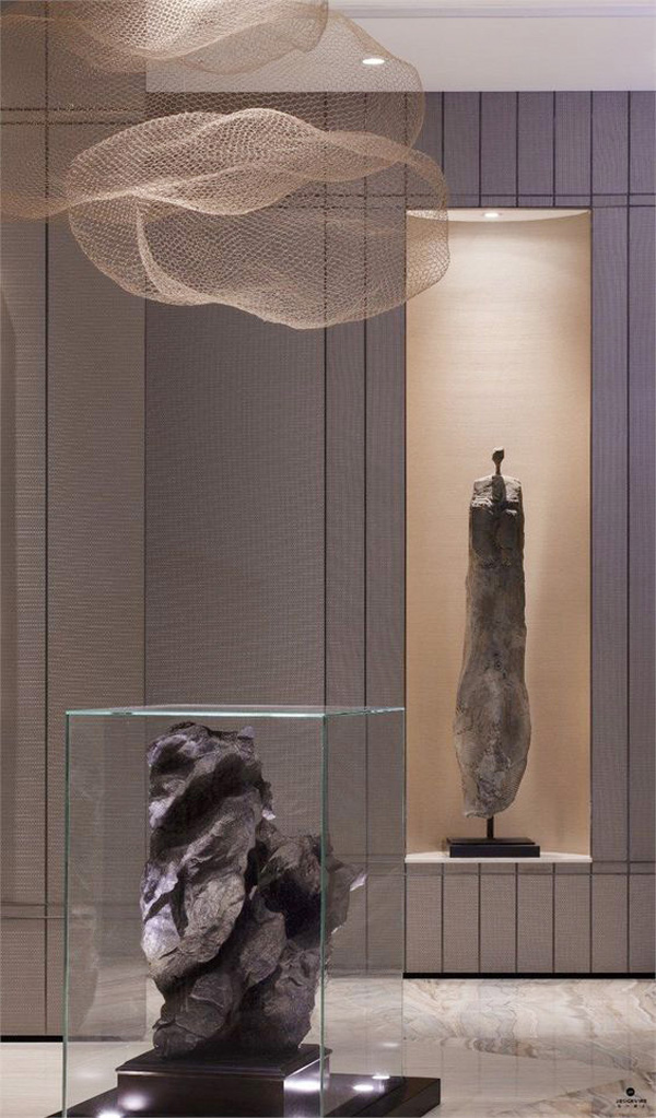 中國是一個講究意境的國家,無論是傳統(tǒng)的山水畫還是園林造園藝術(shù),都講究注重空間的營造。中式風(fēng)格酒店在大堂設(shè)計(jì)中往往運(yùn)用中國古典園林常用的多種造景手法加以渲染,如借景,框景,對景等,園林手法在室內(nèi)空間的運(yùn)用使室內(nèi)空間顯的更具有層次感,更加含蓄自然。