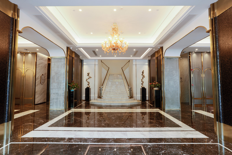 1、接待大廳寬敞、裝修豪華、光線充足。